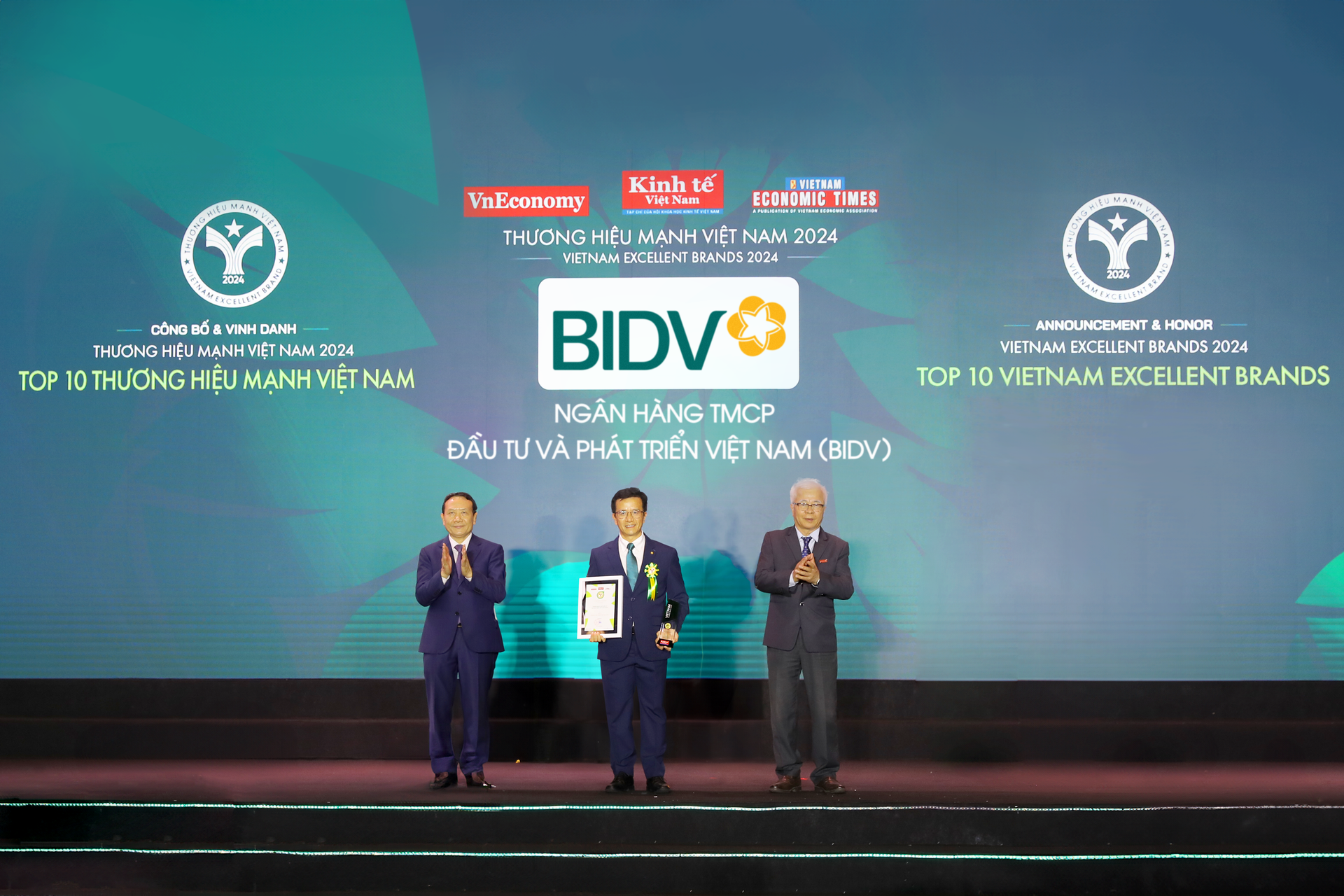 Ngày 16/10/2024, Ngân hàng TMCP Đầu tư và Phát triển Việt Nam (BIDV) đã được vinh danh trong TOP 10 Thương hiệu Mạnh Việt Nam 2023 - 2024.