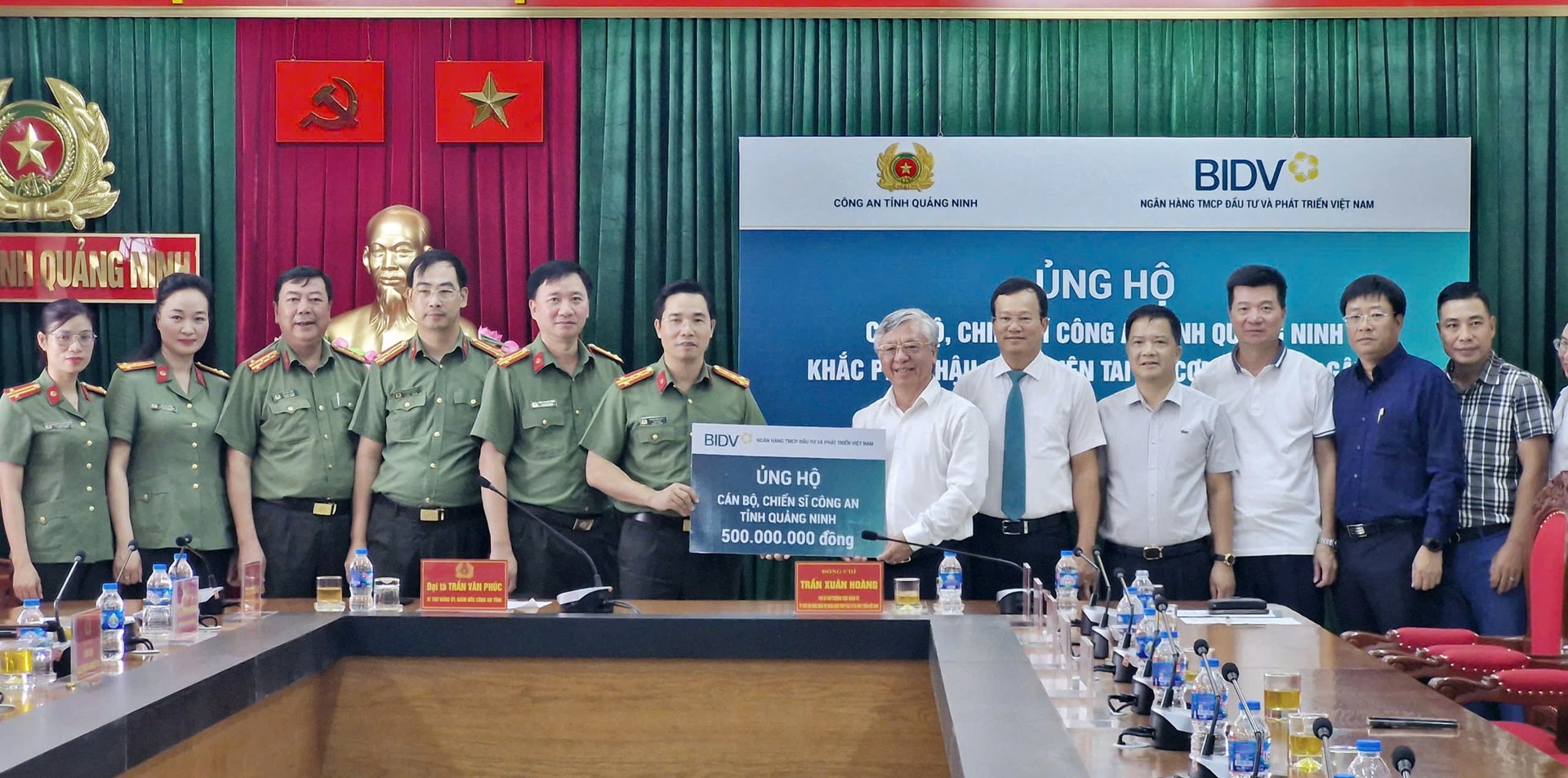 Mr. Tran Xuan Hoang - Standing Deputy Secretary of the Party Committee, Member of the Board of Directors of BIDV - representative of the bank presented support funds at the Headquarters of Quang Ninh Provincial Police