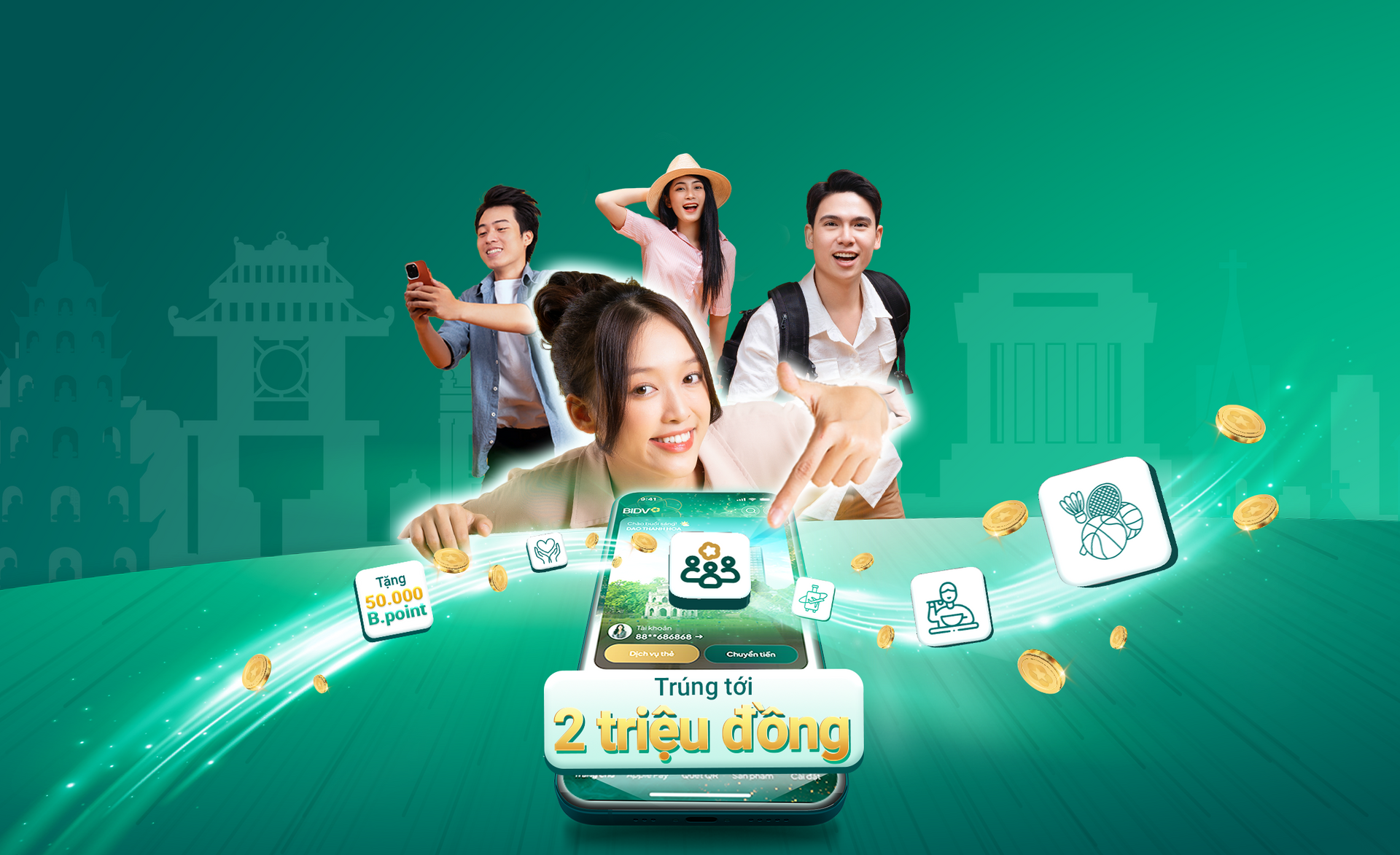 50,000 Bpoints will be given to each of the first 5,000 customers who open a new Group Account and meet the following conditions: The group has at least 3 members (including the fund owner), of which at least 1 member is registering for SmartBanking for the first time and has made at least 5 fund deposit transactions in the month the fund was opened.
