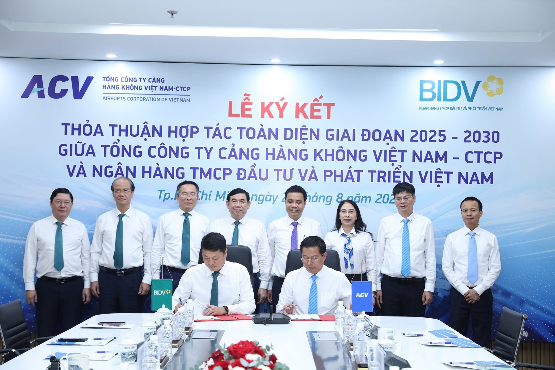 2025년 8월 22일, 호치민시에서 베트남 투자개발 주식회사 상업은행(BIDV)과 베트남 공항공사(ACV)는 2025~2030년 포괄적 협력 협정에 서명하여 지난 기간의 긍정적 성과를 지속하는 것을 기반으로 더욱 강력한 개발 여정을 시작했습니다.