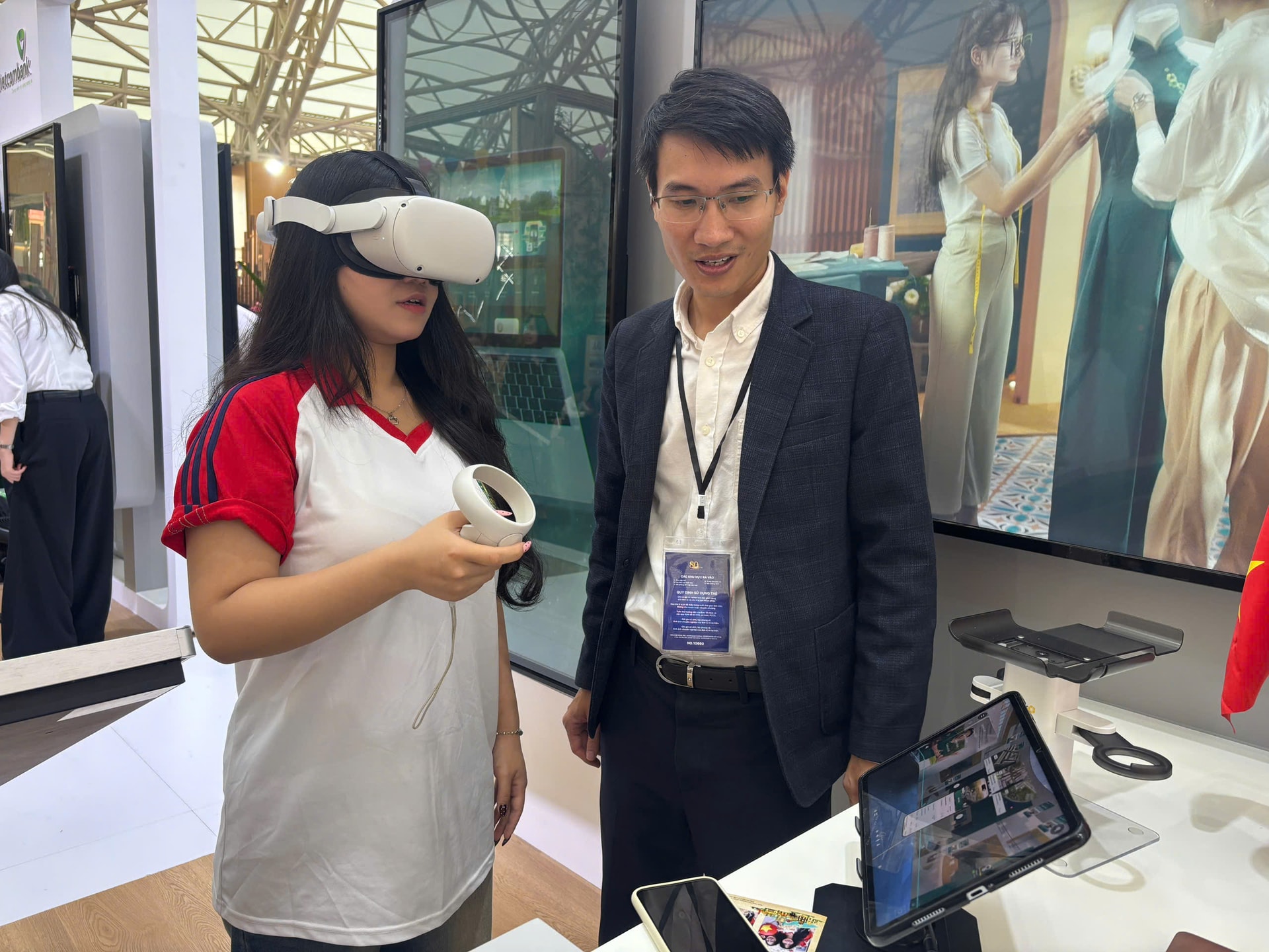 전시회에서 BIDV의 디지털 기술 제품을 체험하는 사람들