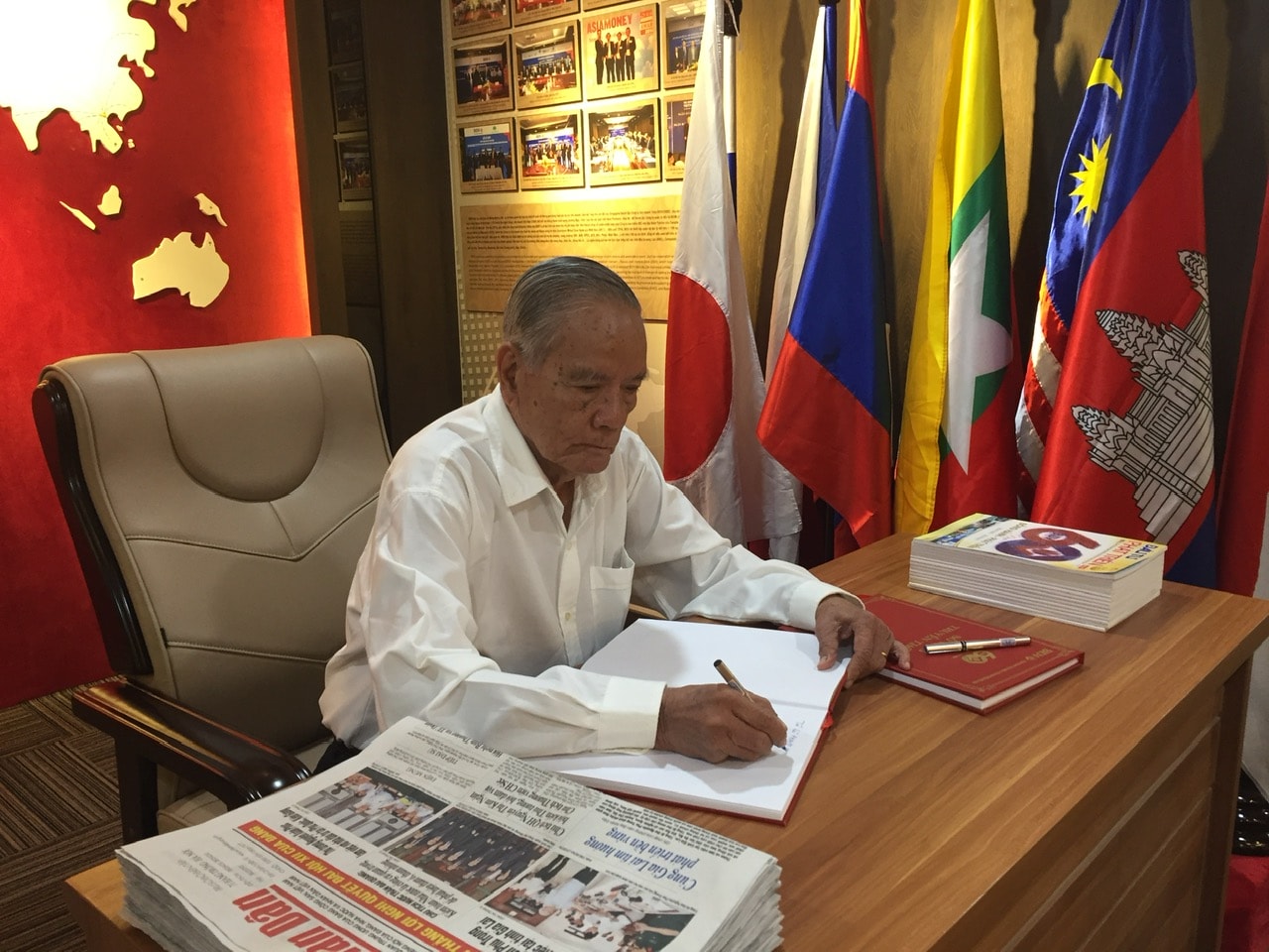 Ông Phạm Học Lâm - Nguyên TGĐ BIDV, viết lưu bút tại Phòng truyền thống